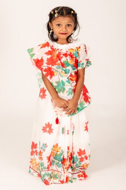Breathable cotton kids sarees designed for daily wear, school programs, and family gatherings—gentle on skin and easy to carry all day.