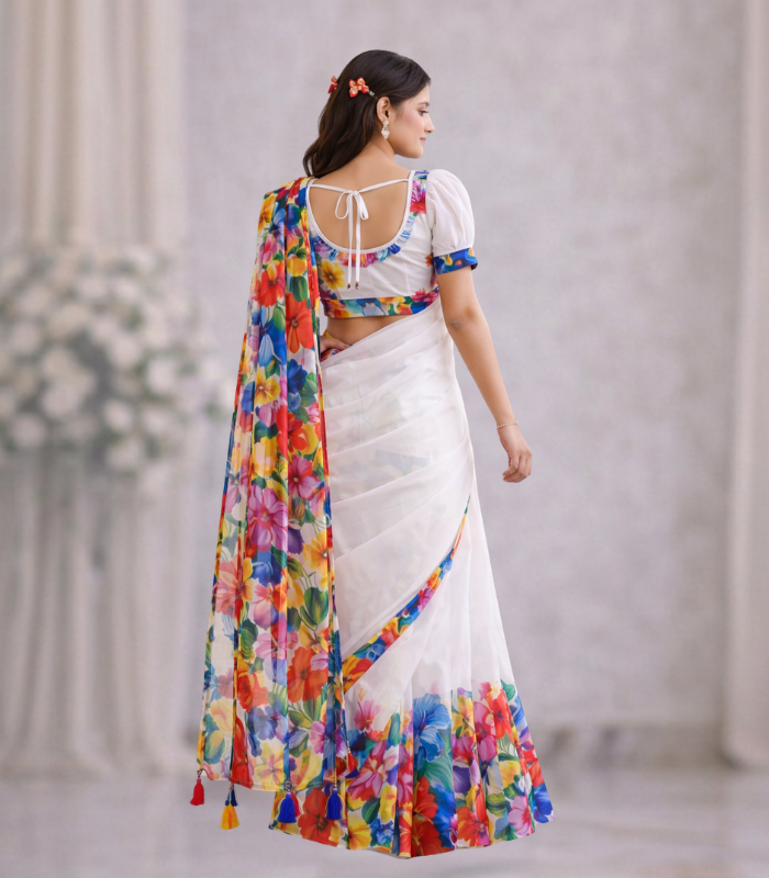 This saree is more than just clothing; it is a statement of identity and elegance. The combination of traditional motifs with modern printing technology makes it suitable for both classic and contemporary styling. You can pair it with traditional jewelry for a cultural look or go minimal for a modern touch.