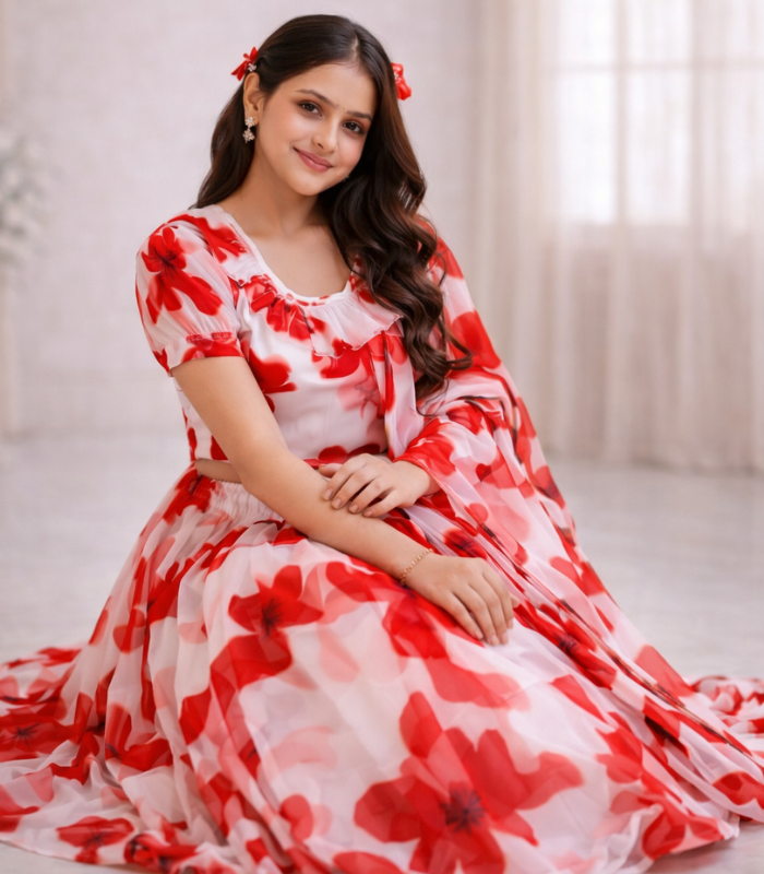 This saree is designed for women who want a unique and refined festive look. Crafted from premium Chandi silk and enhanced with high-quality digital prints, each piece reflects beauty, culture, and modern style.