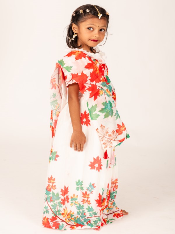 Celebrate elegance with the White Chanderi Silk Chenchuri Leaf Kids Ready Saree from Saree Mela. Soft Chanderi silk drapes gracefully, while the pre-stitched blouse allows quick dressing. The leaf motif adds sophistication to Eid, weddings, or family celebrations.