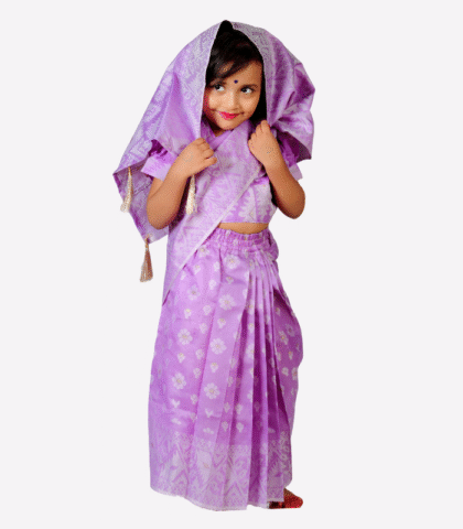 Light Purple Jamdani Baby Ready Saree – Soft Cotton Traditional Kids Saree with blouse