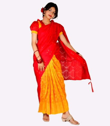 Red & Yellow Contrast Jamdani Baby Ready Saree with Readymade Blouse