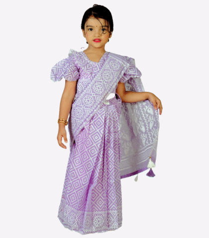Lavender Jamdani Print Baby Ready Saree with Readymade Blouse