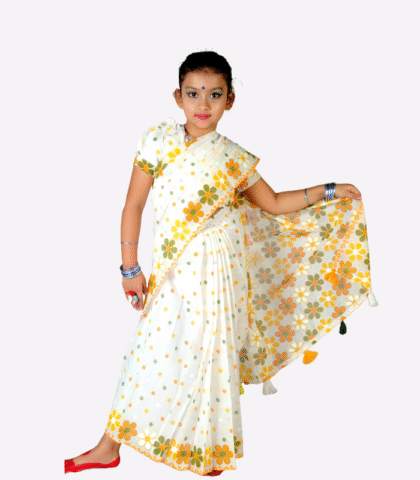 Let your little one shine with timeless elegance. Our handwoven Jamdani sarees offer a rich, traditional look, perfect for special festivals, cultural events, or family gatherings.